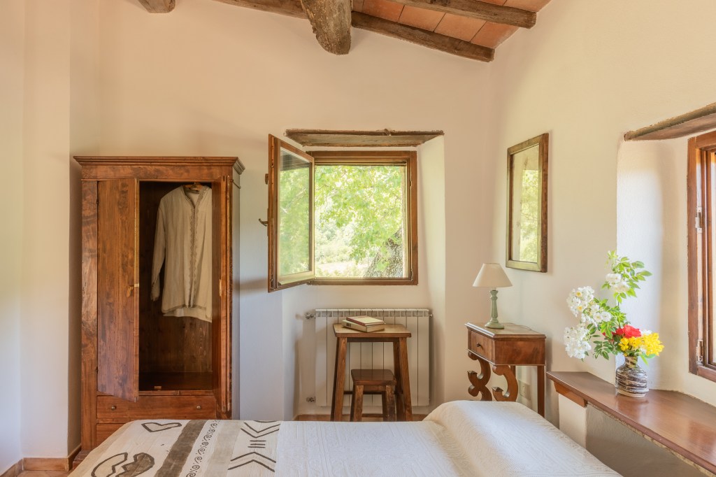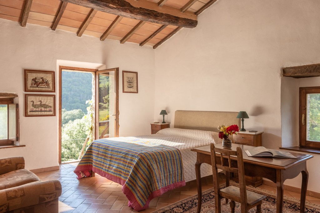 Upon arrival at Le Pianore, we took a few minutes to take in the sweeping vista of olive groves and mountains and then Enrica, our lovely host, guided us to our rooms to settle in. It was Enrica’s parents, Elena and Francisco Micillo, whose vision manifested into the beautiful estate that we too would quickly come to love. The main house, in which most of the bedrooms are situated, dates to 1100AD. One could feel the solidness, the agelessness of the villa in the cool tile floors, beamed ceilings and thick stucco walls. And in the elegantly-furnished bedrooms and common areas, we felt the grace and care and love invested in preparation for their guests. Fresh, fragrant air flowed through the rooms and the mountain views from every window were breathtaking! I could feel my body relax further with every breath.