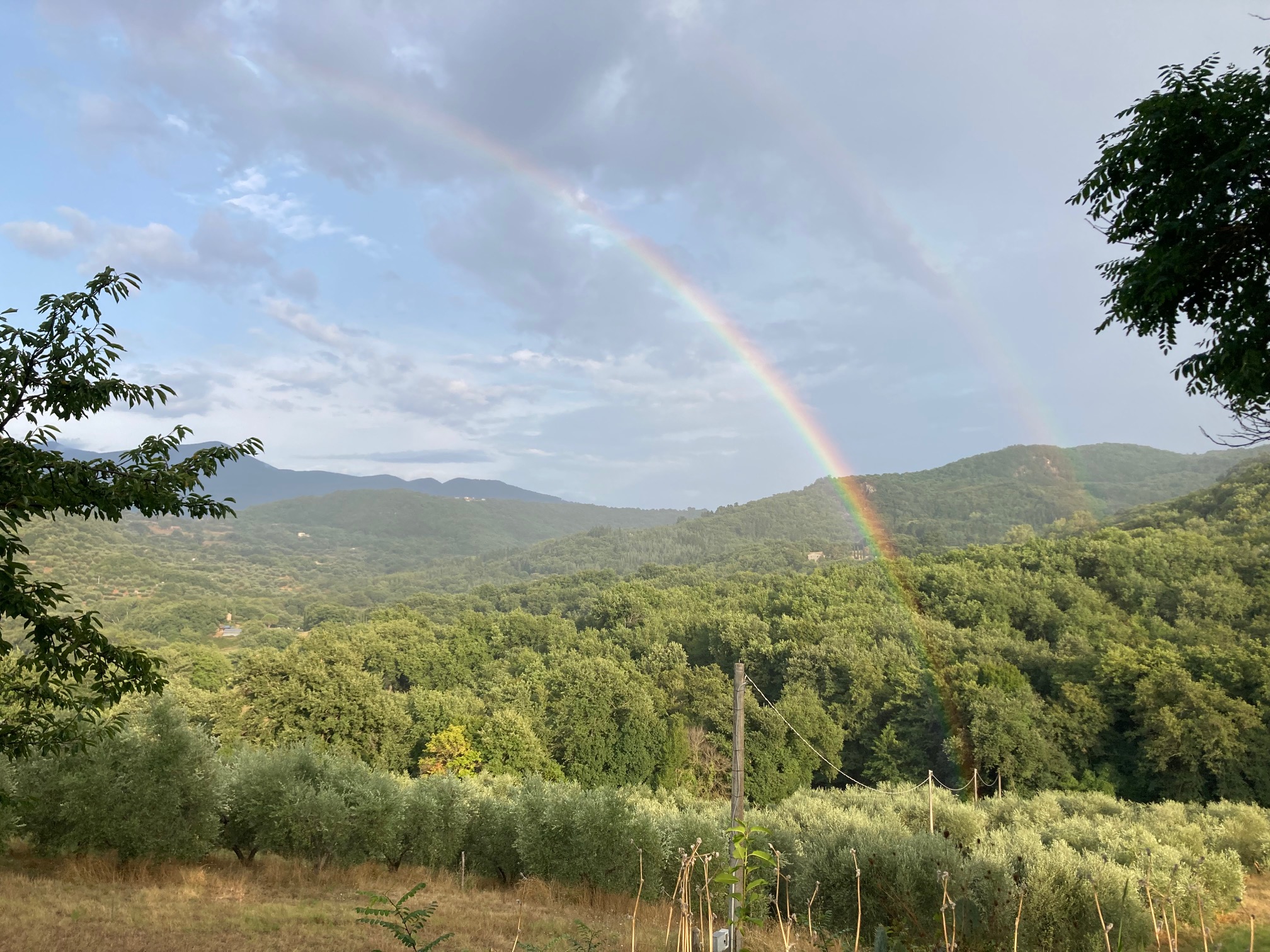 On our mid-morning break, the cloudy morning cleared and the most brilliant double rainbow seemed to shoot up from just beyond Le Pianore’s olive orchard. A welcome sign from the Universe that all was right with the world. And perhaps a good reminder that unseen forces are always at work in our lives and so we do our best to become like the river and flow gracefully around unexpected obstacles and events, learning, always learning, as we move ever forward on our paths.